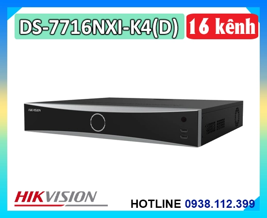 Đầu ghi IP 16 kênh DS-7616NXI-K2(D) cho hình ảnh sắc nét tới 12MP, băng thông 160Mbps. Hỗ trợ chuẩn nén H.265+, xuất hình HDMI 4K và VGA Full HD. Thiết bị tích hợp 2 ổ cứng...