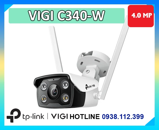 Camera TP-Link VIGI C340 độ phân giải 4MP ghi hình màu rõ nét trong điều kiện cực thiếu sáng hỗ trợ phân loại người phương tiện phát hiện bất thường cảnh báo chủ động chuẩn nén H.265+ âm thanh hai chiều chuẩn chống nước IP67 lưu trữ thẻ nhớ lên đến 256GB quản lý qua ứng dụng hoặc giao diện web NVR